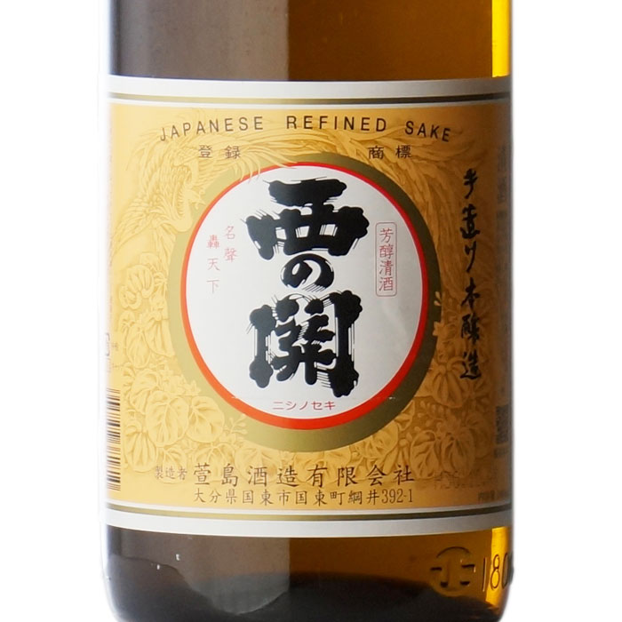 商品名 西の関 手造り本醸造 1800ml瓶 産地 大分県 蔵元 萱島酒造 酒質:特定名称等 本醸造酒 原料 米(国産) 米麹(国産米) 醸造アルコール アルコール度数 15〜16度 精米歩合 65% 日本酒度 -1 酸度 1.2 容量 1800ml瓶 お勧めの 飲み方 △冷やして:5〜10度 ○少し冷やして:10〜15度 ○常温 ◎ぬる燗:40〜45度 ○上燗:45〜50度 ○熱燗:50〜55度 味わい ●蔵元コメントから抜粋● 清酒「西の関」は明治6年(1873)創業で、明治20年代に二代目が 西日本の誇り足るべき抱負と研鑽を象徴して「西の関」と命名致しました。