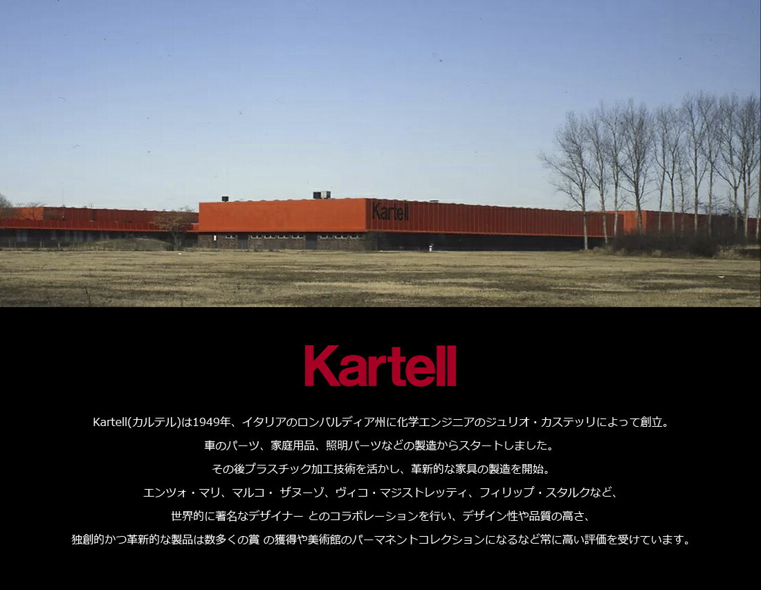 Kartell(カルテル)は1949年、イタリアのロンバルディア州に化学エンシ゛ニアのジュリオ・カステッリによって創立。