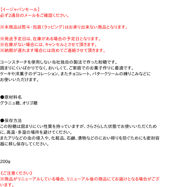 日新製糖 粉糖Z-200 200g ×10個 はコチラ >>【イージャパンショッピングモール】内のみのお買い物は、送料一律でどれだけ買っても同梱する事が出来ます。