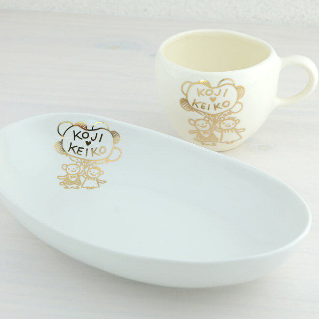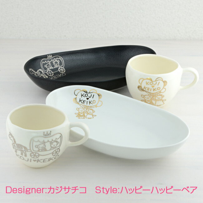 結婚祝い 結婚記念日 銀婚式 金婚式 出産祝い 還暦祝い 新築祝い 引越し祝い 開店祝い 退職祝い 入学祝い 卒園祝い 卒業祝い 記念品 バレンタインデー ホワイトデー クリスマス 母の日 父の日 敬老の日 誕生日祝い【オーダーMYネーム*マグカップW&W+楕円の深皿B&Wセット】 爽やかなオフホワイト・マグのペアに、楕円の深皿をブラック&ホワイトで組み合わせた新婚祝い特別セットです。