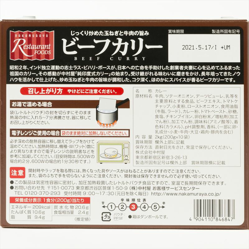 【全国一律送料無料】レトルトカレー ビーフカレー 新宿中村屋 ビーフカリー 200g×10袋 中村屋 カレー 業務用 大容量 電子レンジ調理可能 レトルトパウチ【賞味期限2022年3月】【あす楽】