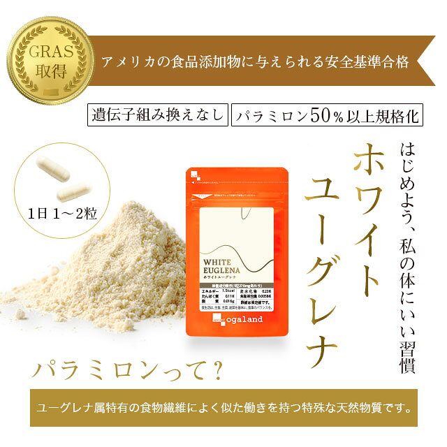 ※5分おきに更新されます 商品名 ホワイトユーグレナ 名称 ユーグレナグラシリス発酵物加工食品 内容量 376mg×30カプセル(3個セット・約3ヶ月分) 原材料 ユーグレナグラシリス発酵物(アメリカ製造)/結晶セルロース、ゼラチン、ステアリン酸カルシウム、微粒酸化ケイ素 ※商品は原料由来の為、製造時期により色合いが多少異なる場合がございます。