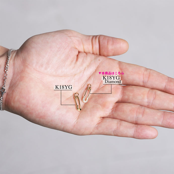サイズ 幅 : 約6mm / 高さ : 約15mm(バチカンを除く) 素材 K18イエローゴールド、ダイヤモンド 商品の特徴 SYMPATHY OF SOULのセーフティーピンチャームです安全ピンをモチーフに、ピンの受けの部分をホースシューに見立てたゴールドチャーム。